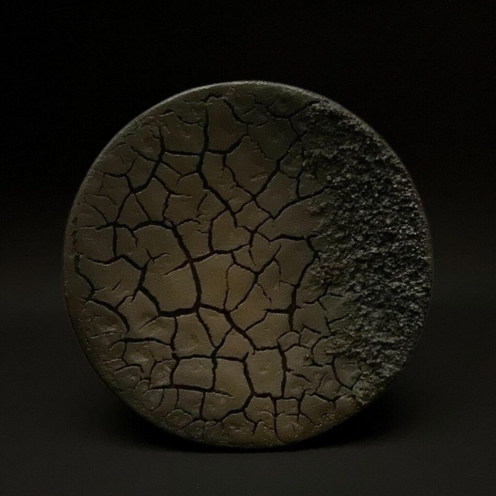 乾ききった大地のように深く走るひび割れと 荒れた質感の中に静かな美を宿したプレート皿。崩れゆく姿にこそ美しさを見出す侘び寂びの心を移し 古い時代から続く「不完全の中に潜む永遠の美」を現代に表現しています。荒寂の表面と静謐な余白が交差する姿は 時の流れを映し出す大地の詩のように 使う人の感性にそっと語りかけます。料理を盛る器としてはもちろん アートピースとして空間に飾れば静かで確かな存在感を放ちます。