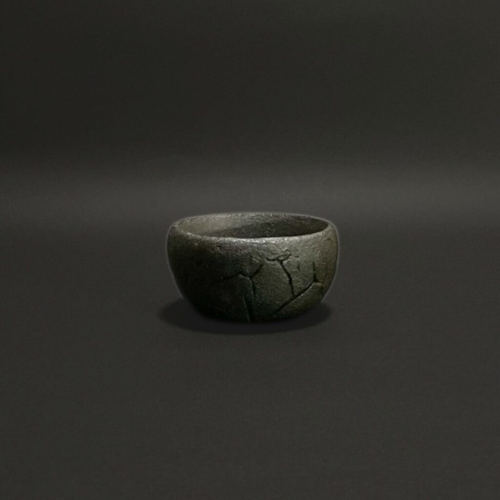 かつてまだ清酒が存在しなかった時代、人々は濁りを含んだ素朴な酒を楽しんでいました。その『にごり酒』の味わいは 古びたものに宿る美しさ すなわち「わび・さび」と深く響き合います。ひび割れた大地のような表情を持つこのぐい吞みは 濁り酒の素朴な甘味と共に 時を越えた趣を引き立ててくれるでしょう。静かに盃を傾ければ 古の宴が目の前に蘇るかのような感覚を呼び起こします。