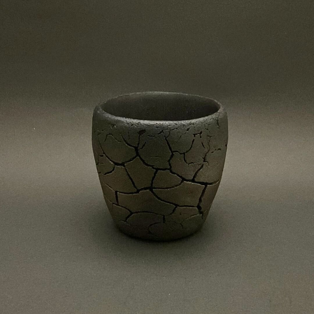 かつてまだ清酒が存在しなかった時代、人々は濁りを含んだ素朴な酒を楽しんでいました。その『にごり酒』の味わいは 古びたものに宿る美しさ すなわち「わび・さび」と深く響き合います。ひび割れた大地のような表情を持つこのぐい吞みは 濁り酒の素朴な甘味と共に 時を越えた趣を引き立ててくれるでしょう。静かに盃を傾ければ 古の宴が目の前に蘇るかのような感覚を呼び起こします。